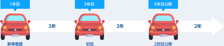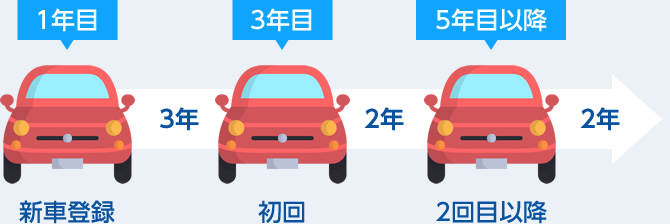 自家用車の車検の有効期限は、新車登録~初回の検査までが3年間、それ以降は2年目ごとに(※普通乗用車の場合)検査を受けることになっていて、次の車検は期間満了の1ヶ月前から受けることができます。